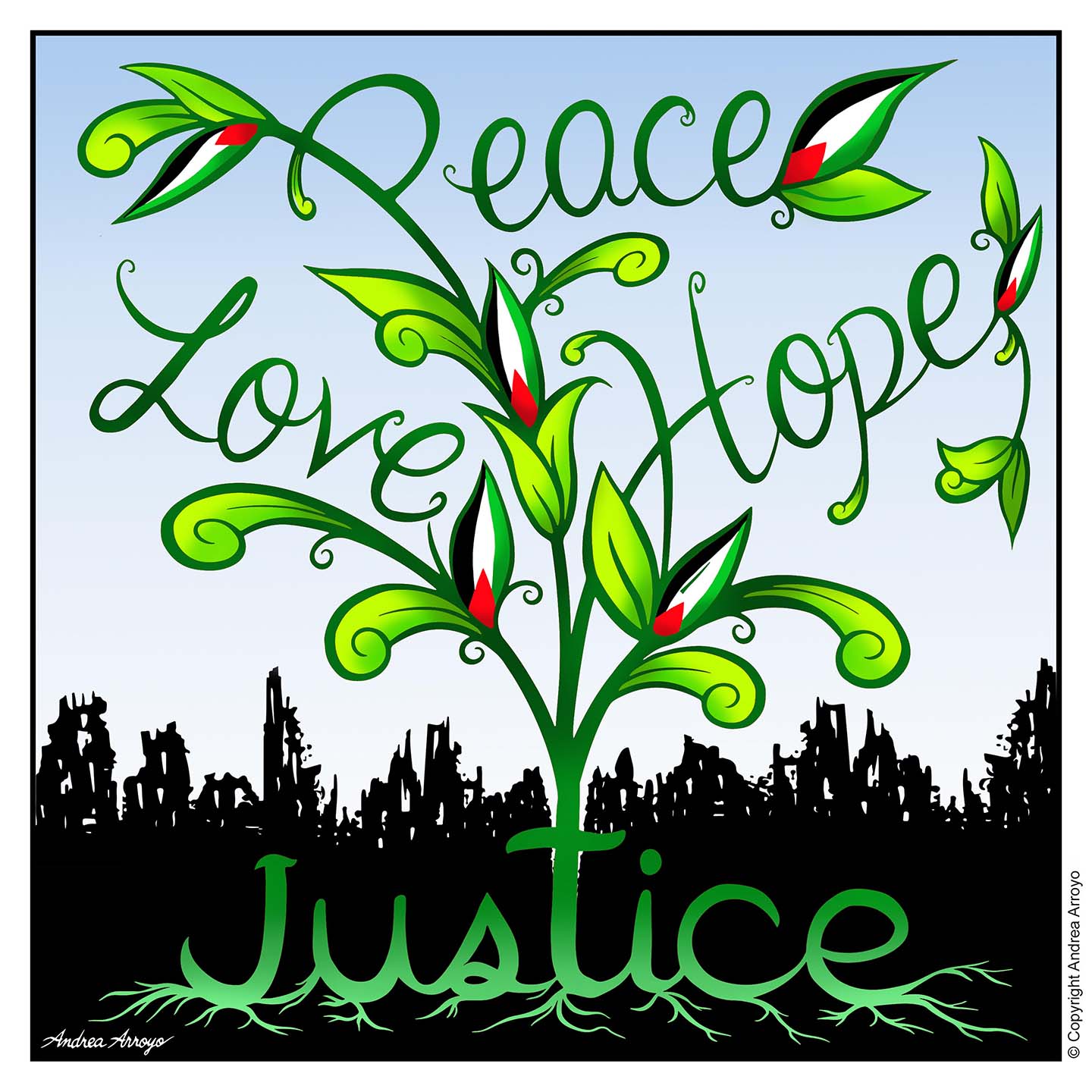OppArtOctober 24, 2025Justice Is the Root of PeaceJustice Is the Root of PeaceA ceasefire is only the beginning. Without justice, there can be no peace. Andrea Arroyo Share Copy Link Facebook X (Twitter) Bluesky Pocket Email October 24, 2025 (Andrea Arroyo). Check out all installments in the OppArt series.