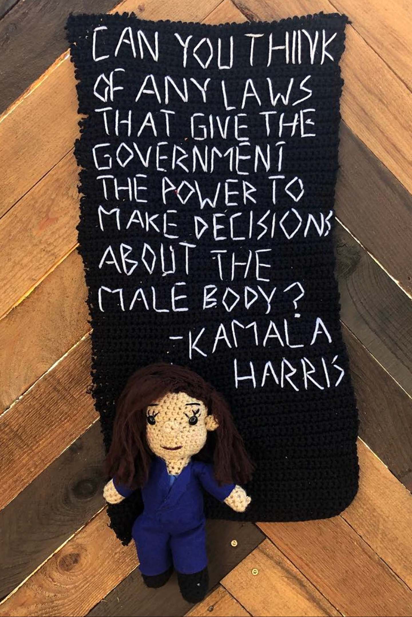 “Can you think of any laws that give government the power to make decisions about the male body?” is a quote from Kamala Harris during Brett Kavanaugh’s confirmation hearing in 2018.