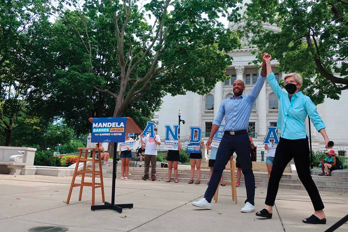 A lot of Democrats try to hit that progressive populist high note, but Massachusetts Senator Elizabeth Warren, an early and enthusiastic Barnes backer, says few do it as well as the Wisconsinite. Warren hails Barnes as “not only not Ron Johnson, which is like the first threshold,” but as “the 51st vote” for progressive programs that were stymied and stalled over the past two years.