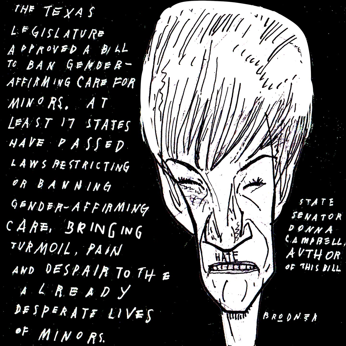 PoliticsMay 19, 2023Pieces of HatePieces of HateElon. Steve Brodner Share Copy Link Facebook X (Twitter) Bluesky Pocket Email May 19, 2023 N (Steve Brodner)