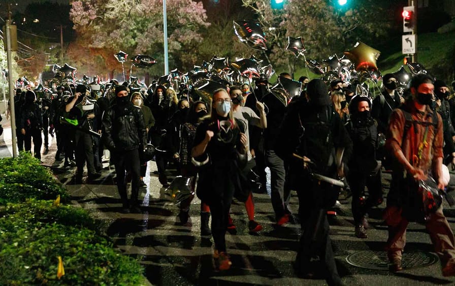 On Wednesday, after his victory, Wheeler predicted that a victory by Joe Biden in the presidential race would “take some of the heat off” Portland and dampen the protests. It’s already true that protests have shrunk considerably from their peak this summer after George Floyd’s killing and after federal agents arrived and escalated the conflict between protesters and law enforcement. But the police bureau’s problems with excessive force and discrimination go back decades, far predating President Trump and his fascination with Portland. Meanwhile, advocates, lawyers, and officials like Hardesty are committed to continuing to push Wheeler on reform. A few hours after Wheeler’s remarks, a few hundred protesters began to march through the city, lead by a banner reading, “The vote is over, the fight goes on.” They were met by a massive police force, which included the Oregon National Guard, Oregon State Police, the Multnomah County Sheriff’s Office, and the Portland Police Bureau, acting under an emergency order from Governor Kate Brown.