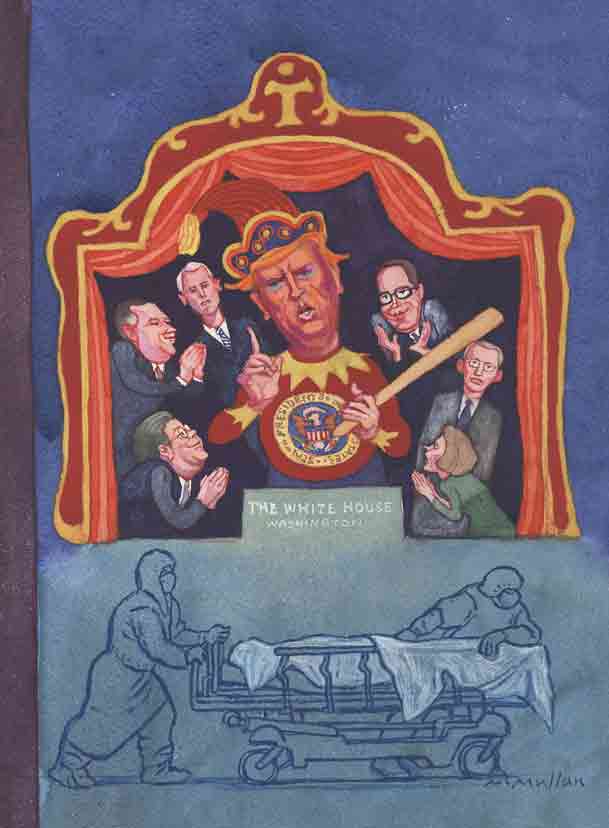 PoliticsOppArtMay 6, 2020President Punch (and His Judys)President Punch (and His Judys)Trump lashes out as the pandemic spreads. James McMullan Share Copy Link Facebook X (Twitter) Bluesky Pocket Email May 6, 2020 Check out all installments in the OppArt series. Keep Reading Ad Policy