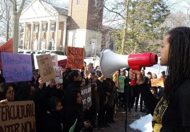 Amid extensive racist harassment, including death threats, students from the Kalamazoo College Intercultural Center Movement have declared a state of emergency. On March 7, 100 students, faculty and members of the Grand Rapids Black Lives Matter chapter stormed the college’s Board of Trustees meeting to urge the administration to listen to the voices of students of color who feel #UnsafeAtK. Prior to the action, we held a press conference addressing our experiences with racism on campus and the college’s continual neglect of our concerns, while demanding an intercultural center, administrative transparency, increased hiring and retention of faculty of color, recruitment of local students of color via the Kalamazoo Promise and the incorporation of ethnicity requirements throughout the curriculum.