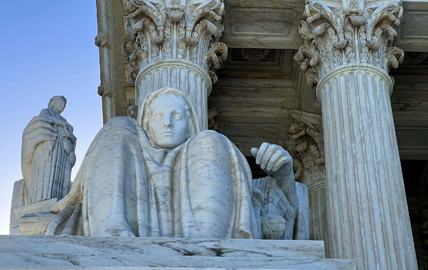 The statue “Contemplation of Justice,” above the west front plaza of the U.S. Supreme Court.