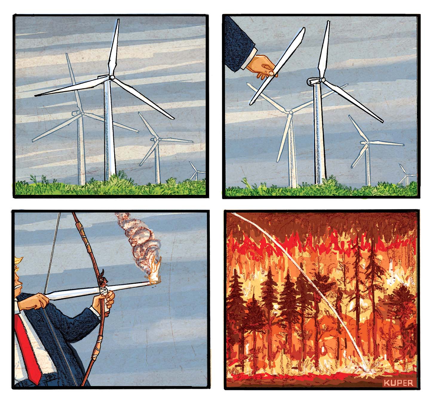 EnvironmentOppArtFebruary 28, 2025Trump Undoes Environmental ProtectionsTrump Undoes Environmental ProtectionsDenying reality as climate disasters spread. Peter Kuper Share Copy Link Facebook X (Twitter) Bluesky Pocket Email February 28, 2025 (Peter Kuper). Check out all installments in the OppArt series.