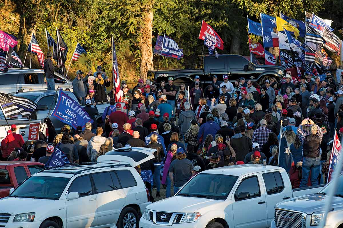 We encountered an example of this move to social media—and growing skepticism about traditional media—in Cheo Breñas, a Cuban exile operating a flea-market boutique near the start of the famed Chisholm Trail in Brownsville. His Facebook page, “Donald Trump Para Hispanos,” is awash with pro-Trump YouTube clips. The man was still busy on January 6, posting more than 80 times. In one of Breñas’s Facebook posts, he says, “A new party for Trumpistas—who is with me?” (After we interviewed Breñas, the page was taken down.)