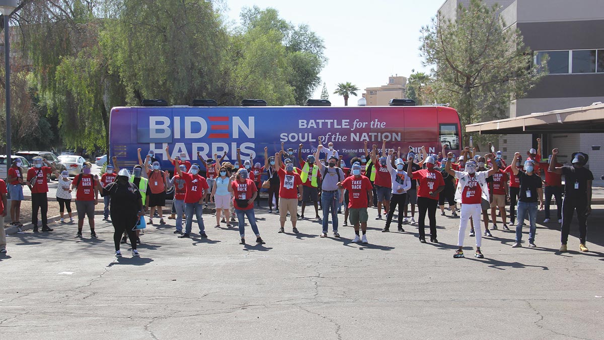 Early on the morning of July 20, Unite Here Local 11 Copresident Susan Minato crammed her suitcases, computer, and other necessities into her gray SUV rental and set off on a 371-mile drive from her home in the Mount Washington neighborhood of Los Angeles to Sun City West, on the northwestern edge of Phoenix. She was on a mission: to knock on as many doors as possible and help flip Arizona blue for Joe Biden.