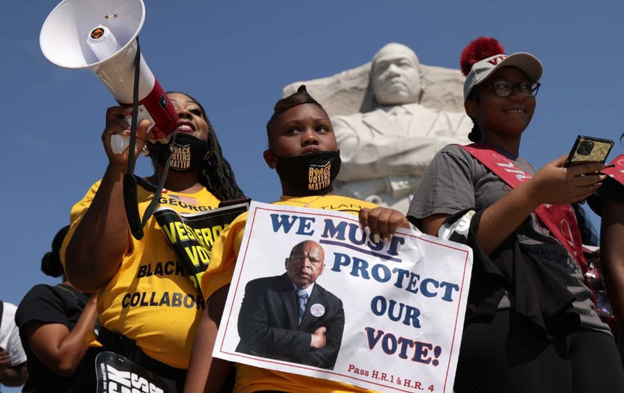 “I want you to know,” said Sewell, “that the modern-day barriers to voting are no less pernicious than those literacy tests and those poll taxes. And what we must do, as we did back in the ’60s, is when we see states running amok, we need federal oversight.”
