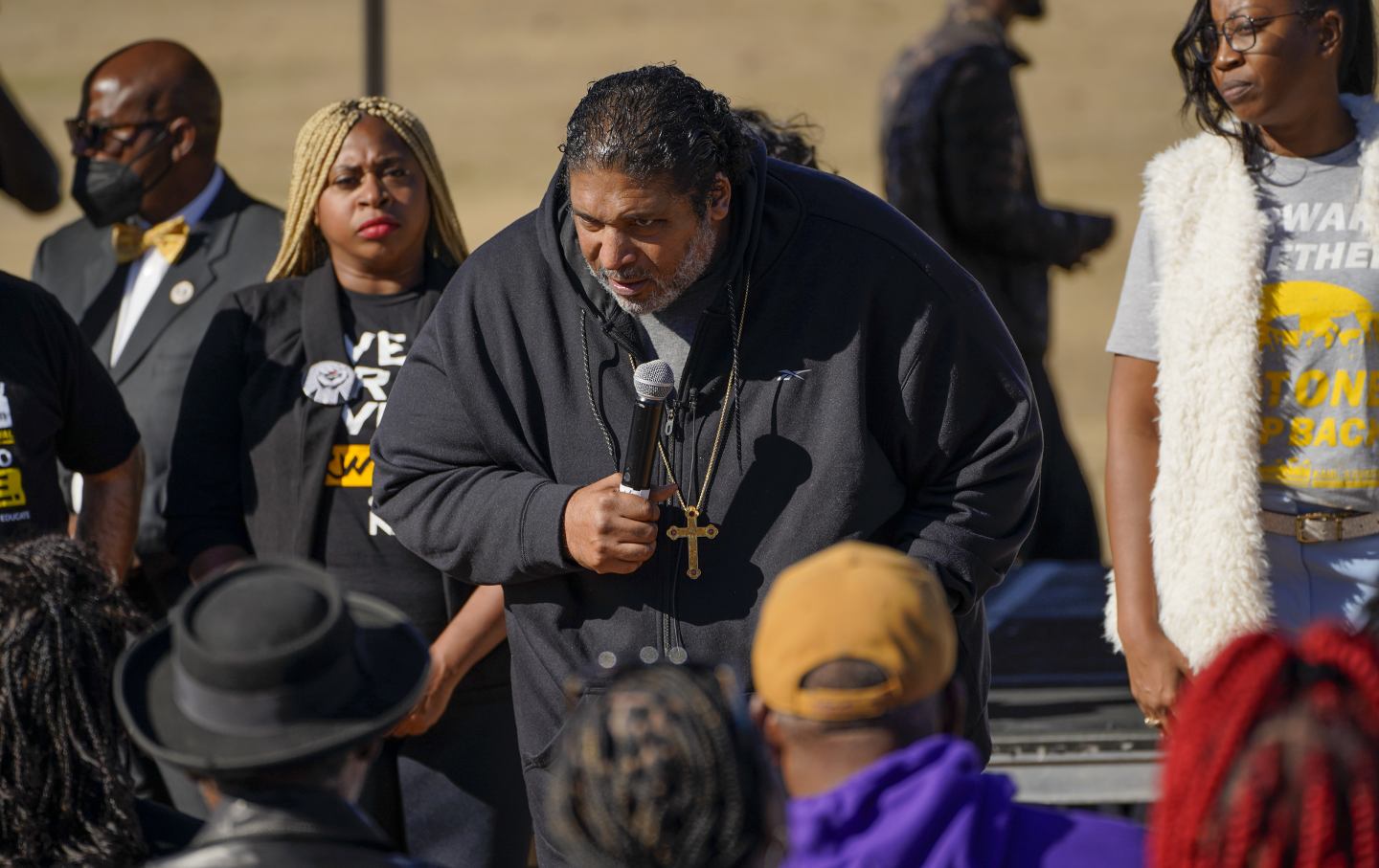The Rev. William J. Barber II speaks during an early voting rally near a polling location in Columbus, Ga., on Sunday, November 27, 2022.