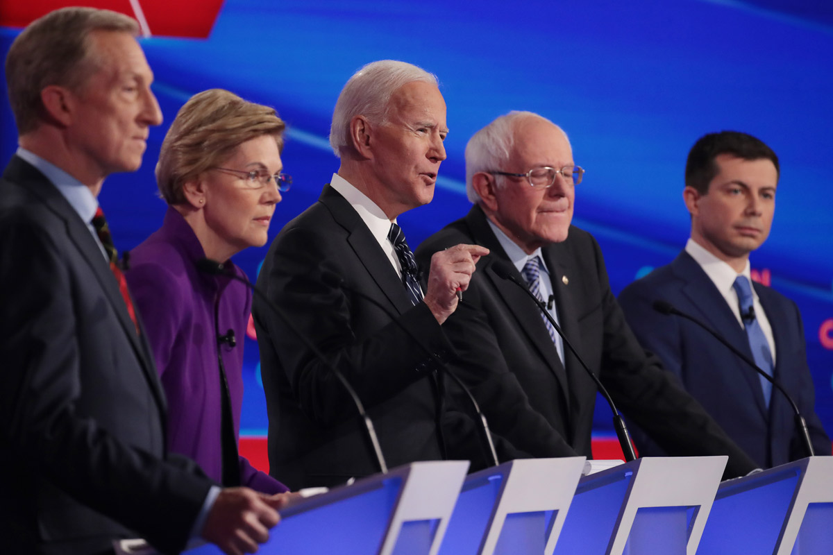 Meanwhile, Warren, steadily rising in the polls, was able to avoid attacking her rivals. She came in for some criticism for her sassy response to a question about how she would answer a theoretical homophobic voter who believed marriage was “between one man and one woman.” She said she’d tell him that he should feel free to “marry one woman” and added jokingly, “assuming you can find one.” As New York’s Rebecca Traister noted, “Lots of people loved it. The clip went viral.” But some men weren’t so thrilled. The Washington Post, calling Warren’s quip “acerbic,” quoted Democratic strategist Hank Sheinkopf, who characterized it as “a battle cry for men to turn out against” her.