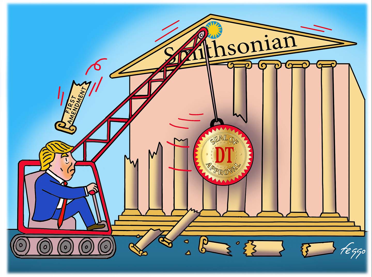 The Trump administration has announced plans to audit exhibitions at eight Smithsonian museums. Among the works labeled “objectionable” is an artwork by cartoonist Felipe Galindo Feggo. This targeting is a direct threat to artistic freedom and a chilling attempt at censorship.