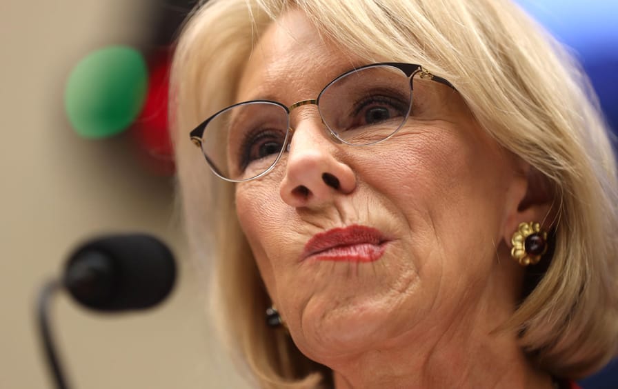 That was DeVos returning to one of her favorite themes: taking money that’s intended for public education and, instead, using it to fund private schools.