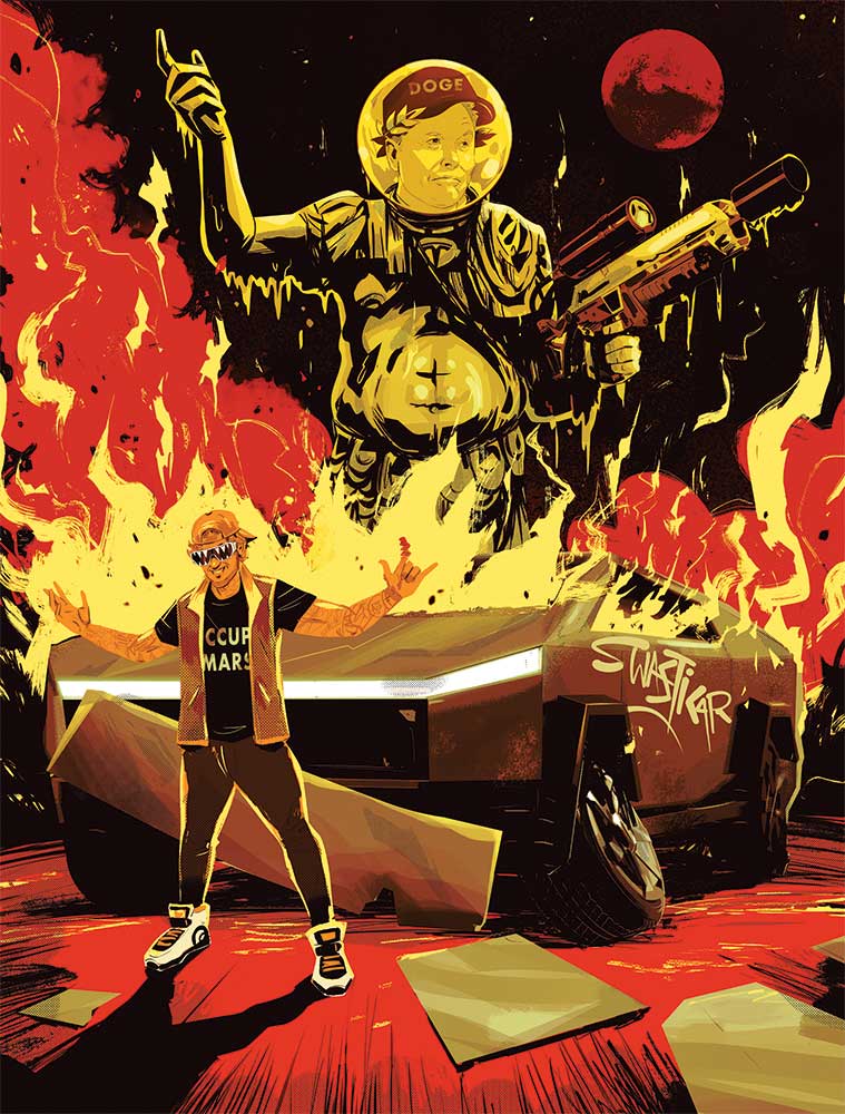 In January 2025, a Cybertruck exploded in front of the Trump hotel in Las Vegas—a metaphor for what the year had in store.