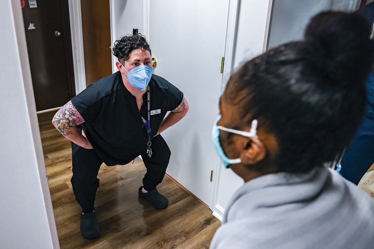“Which is really upsetting,” she told me in the break room when she was between patients, “given that I’m one of the few people who actually does this care and takes care of the patients that are left behind.”