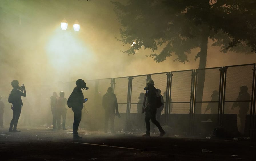 Federal forces’ use of crowd control munitions in Portland has stirred controversy, particularly after police shot a 26-year-old protester in the head with a “less-lethal” munition, fracturing his skull and seriously injuring him. A Federal Aviation Administration official told The Nation use of tear gas was so pervasive that clouds of it were getting picked up on their radar. Even Portland Mayor Ted Wheeler was gassed after talking to protesters.