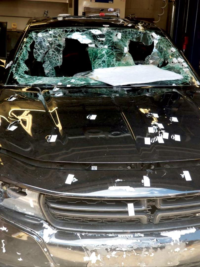 According to The New York Times, Butch Sanders, the Snellville city manager, claimed Sisay discharged his weapon five times. But Sanders told me that he “did not mention a specific number of shots.” He stopped responding to my e-mails after I asked him to clarify whether he maintains that the Times misrepresented the details of its reporter’s conversation with him. Whitehead, however, said that Sisay was in possession of a five-chamber revolver and that all its shots had been discharged. A photo of the car, after it was taken in for evidence, shows white stickers placed next to every bullet hole. There are dozens. If Sisay did shoot five times, the rest must have been fired by law enforcement. Was all this necessary for one man who was not presenting a danger to the public?