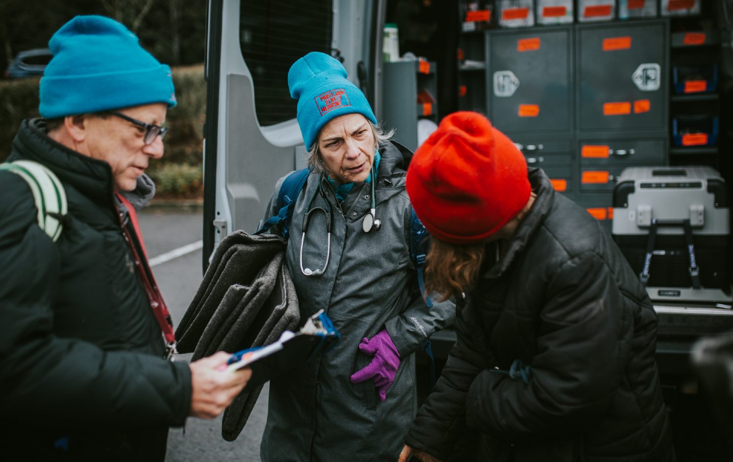 One of the foundational principles of street medicine is that providers meet people wherever they are. Offering regular care directly can avert unnecessary, expensive trips to the emergency room. It also helps build trust with people who might never visit a hospital or clinic, even if they’re critically ill or injured. “When somebody comes into a health care setting, if they’re not clean or they don’t communicate well or they can’t bring their service dog, it can result in quite traumatic experiences, so they avoid it,” Toepper said. “Our experience on the streets is that people are underutilizing health care.”