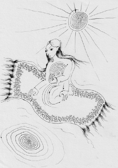 But most often the music sounds otherworldly, from another time, certainly from other places, sometimes with vocalization, most often without. The music can become at times achingly beautiful, and each song generates a new series of hallucinations. At times they resemble knotted rope like macrame or sculptures made of bones like scrimshaw or cascading gemstones.