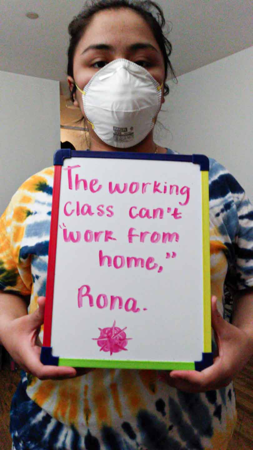 Heidy Animas: “We as working class migrants cannot give ourselves the privilege of not working, we have to pay the rent, the bills. And although I was born here, my parents are immigrants.”