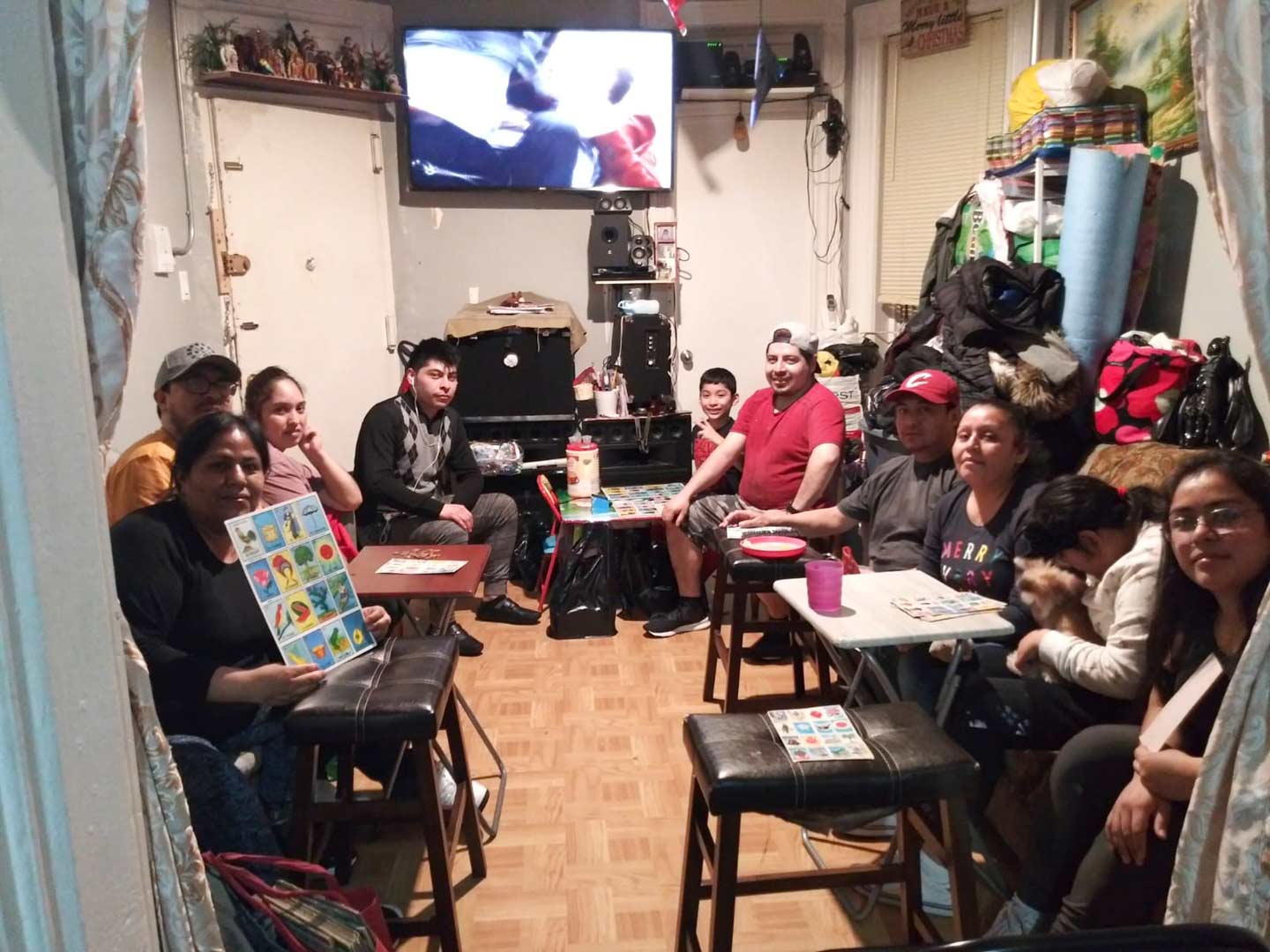 Myrna Lazcano: We do gather between friends and family to endure this crisis as we play the lottery and eat together. Although we do not have much space and we know that we are in a crisis, we, as migrants, always know how to get out of hard times.