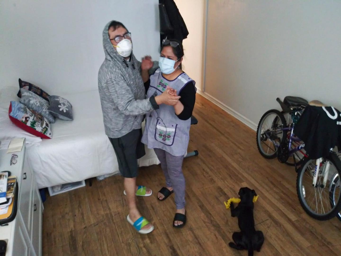 Myrna: Miguel and I are dancing to Boleros songs by Mexican singer Javier Solis in the living room.