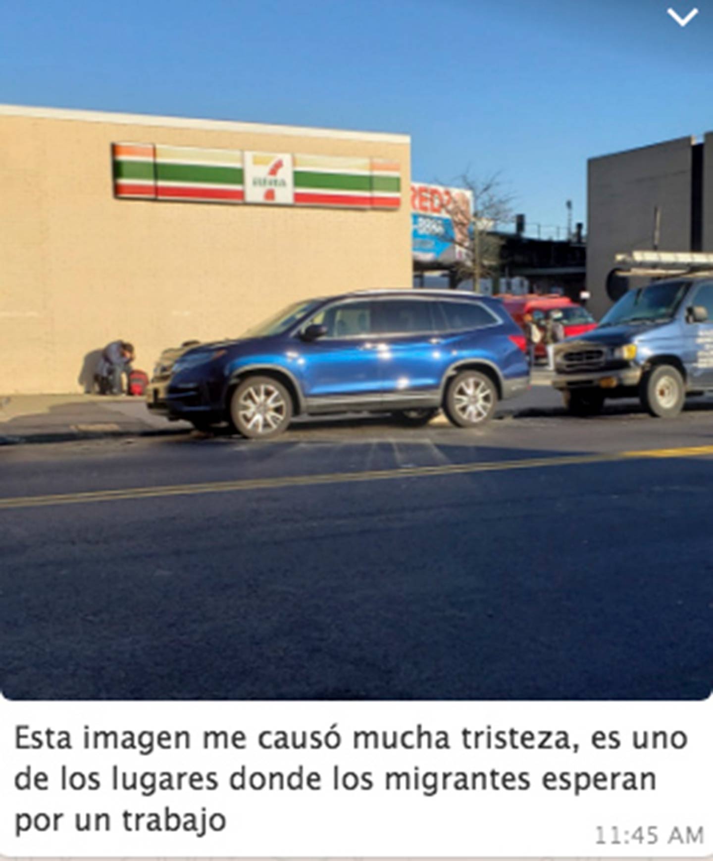 Walking towards my work I passed by “la parada,” one of the places where migrants wait to be picked up for work [in Brooklyn]. I see a lot of worry on their faces, immigrants are afraid of losing their jobs in this pandemic.