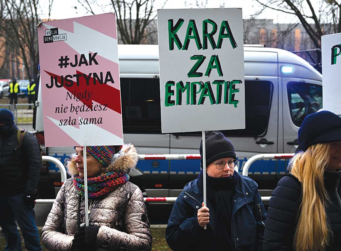 Warsaw—On March 14, Justyna Wydrzyńska arrived for her final day of court dressed in a magenta pantsuit, an orange blouse, and a gold necklace that read “Mife/Miso,” a reference to the two drugs used for medication abortion. As she got out of the car and began walking down the sidewalk, a cheer went up from the crowd of demonstrators who had turned out to support her.
