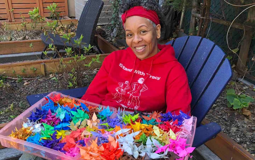 McCarter’s case attracted the attention of organizers with Survived and Punished, a national network that works with criminalized and incarcerated abuse survivors. Members formed the “Stand with Tracy” campaign and attended every court hearing, often sporting bright-red campaign shirts. They also publicized her case and worked with other organizations, such as Color of Change, to press the district attorney to drop the charges.