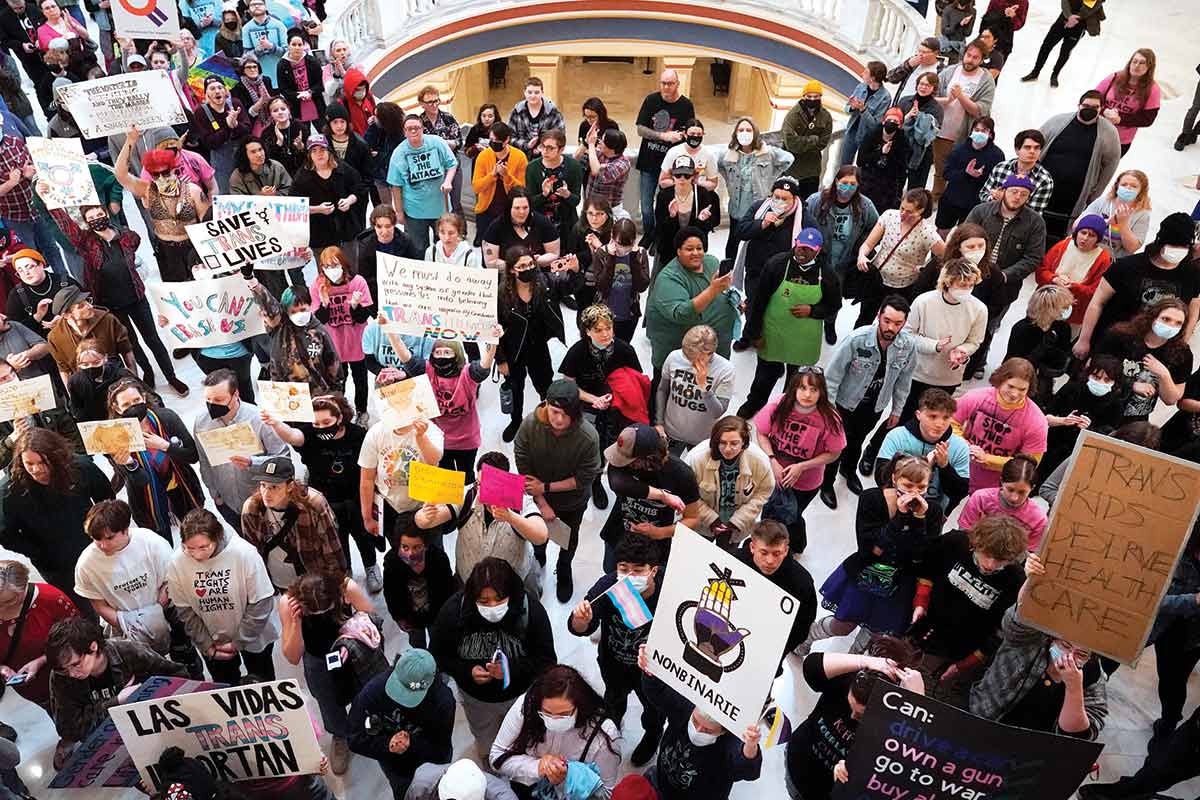 The bills go after the very resources that keep trans and nonbinary kids alive. The roughly half of trans and nonbinary young people in the Trevor Project’s survey who said their school was gender-affirming also reported fewer suicide attempts. Schools can be refuges for LGBTQ kids, fewer than 40 percent of whom said their home was accepting. Yet there were at least 338 bills introduced this year that target gender education or expression in schools by, for example, banning books that promote “gender fluidity,” preventing athletes from playing on the team that matches their gender identity, or forcing educators to out students to their parents. Nineteen states have banned gender-affirming medication for transgender youth; five states make providing such care a felony. (Some of these bans have been blocked in court.) A bill pending in Oklahoma that would ban insurance coverage for gender-affirming care for people of all ages makes clear that the target is not just kids; proponents acknowledge that banning all transition care is their goal.
