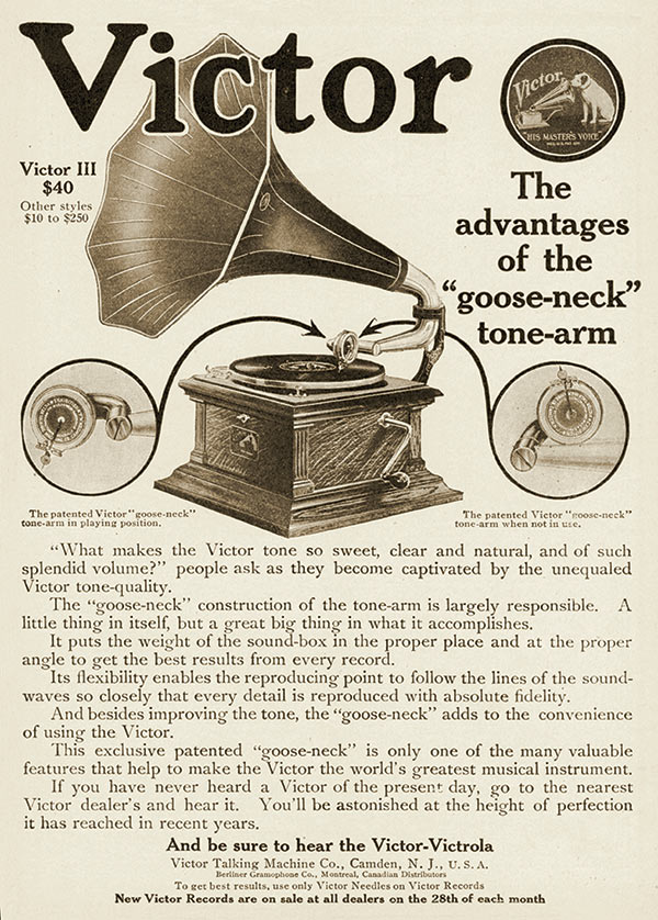 In 1902, Thomas Edison’s wax cylinder was finally sturdy enough to be sold in bulk, and Americans started buying recordings of music for the home phonograph. There was money to be made from this novel idea: Enrico Caruso’s rendition of “Vesti la giubba” from Pagliacci would sell a million copies by the end of 1903. Soon enough, the 78-rpm record, a brittle disc of lacquer with grooves on each side, became the standard. The technology seems primitive—a needle riding a groove without even a basic electric current—but it could be very loud. Ma Rainey recorded a string of important hits in the 1920s, and the Mother of the Blues still has the power to make a weak man change his cheating ways—especially if you hear her sermon blaring out of the old Victrola, its bent bell horn projecting ominously into the room.