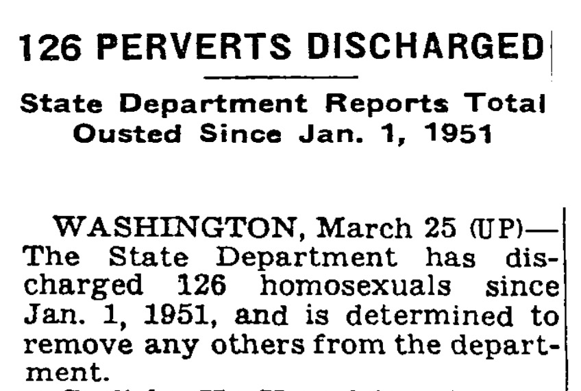 Ironically, Shaw was a supporter of gay rights, so his seemingly irate tone was most likely satirical. Rather than follow his more enlightened path, though, the Times charged hard in the other direction for decades. The paper’s archives are filled with casually bigoted items about queer people—“126 PERVERTS DISCHARGED,” read a 1952 headline about an anti-gay purge at the State Department—and the sort of pseudoscientific babblings about the psychological sickness of homosexuality that pervaded mid-20th-century discourse. (The Times was by no means alone in this approach; The Nation, for instance, ran a 1957 cover story titled “The Homosexual: Challenge to Science.”)