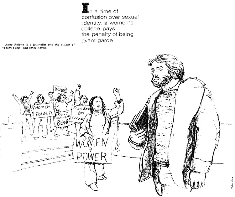 At the same time, the paper continued to be a haven for rank bigotry, as in a virulently homophobic 1977 feature by Anne Roiphe about the supposed “trouble” at Sarah Lawrence College being caused by the presence of lesbians on campus. (“[I]t might be possible, without reversing the sexual revolution or infringing on anyone’s civil rights, to suggest an effort to control the visibility of homosexual activity, so that the campus can again attract some of the students who are now frightened off,” Roiphe advised.)
