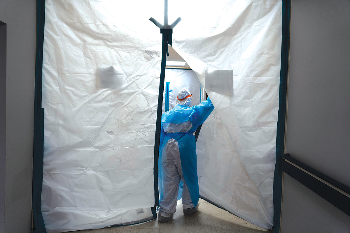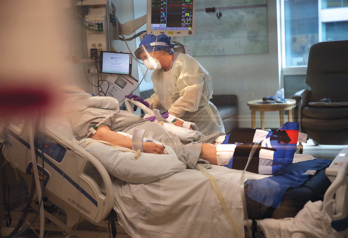 In the earliest, most brutal days of the pandemic, when Keefe and her coworkers arrived, they would each suit up in their one gown and N95 mask for the day. When they needed a break, they would remove that one dirty gown and mask and then carefully put them back on to perform procedures that, Keefe noted, generate a lot of aerosols—the droplets that spread the virus. They planned carefully when they visited patients’ rooms, trying to anticipate needs so they could make as few trips as possible. At any moment a “code” might be called: the alert that a patient was in need of resuscitation. Those alarms were heard “much, much more frequently” than in the past.