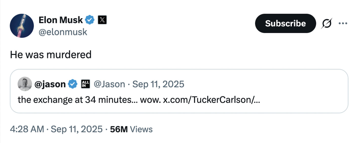 Balaji’s parents have little choice but to embrace those who are willing to grant them attention and entertain their questions about their son’s death. They have repeatedly posted on X asking for help from Musk and MAGA politicians like Vivek Ramaswamy. When Carlson offered Ramarao access to a massive audience, she accepted.