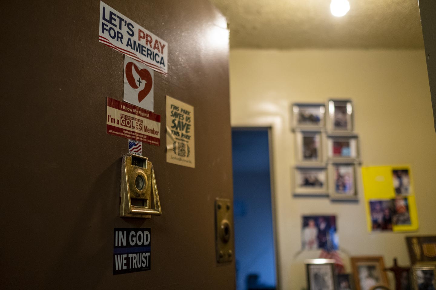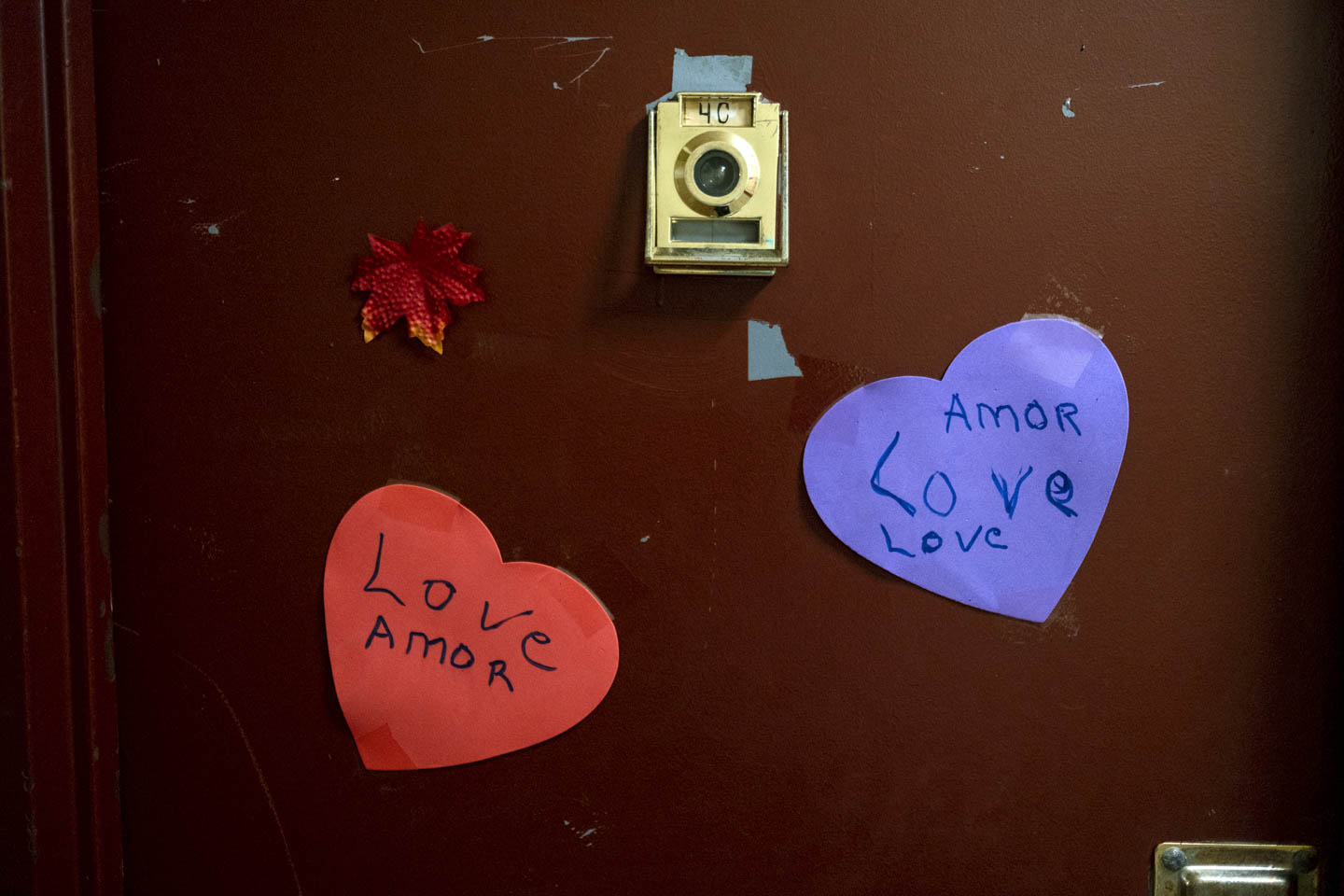When the Covid-19 pandemic hit New York, I wanted to stay connected to my community. The NYCHA is the largest public housing agency in the United States, and more than 400,000 New Yorkers live in these buildings, so even with chronic underfunding and a years-long backlog for repairs and upkeep, these buildings allow many people to keep a long-term, stable home in a city that seems to be constantly changing. I started volunteering with frontline workers to help deliver food and PPE to my neighbors. We’d go from floor to floor, knocking on doors and chatting with residents. I began to notice that these doors, though standardized like a lot of NYCHA housing, were serving as impromptu canvases for residents to express their perspectives and attitudes about the outside world. A crucifix on a door attests to one resident’s faith; an “I Voted” sticker expresses another’s civic-mindedness; a Puerto Rican flag signals another’s background. I started photographing these doors, and as I did so I also began talking to the people behind the doors, to learn about the many different walks of life that call NYCHA housing home.
