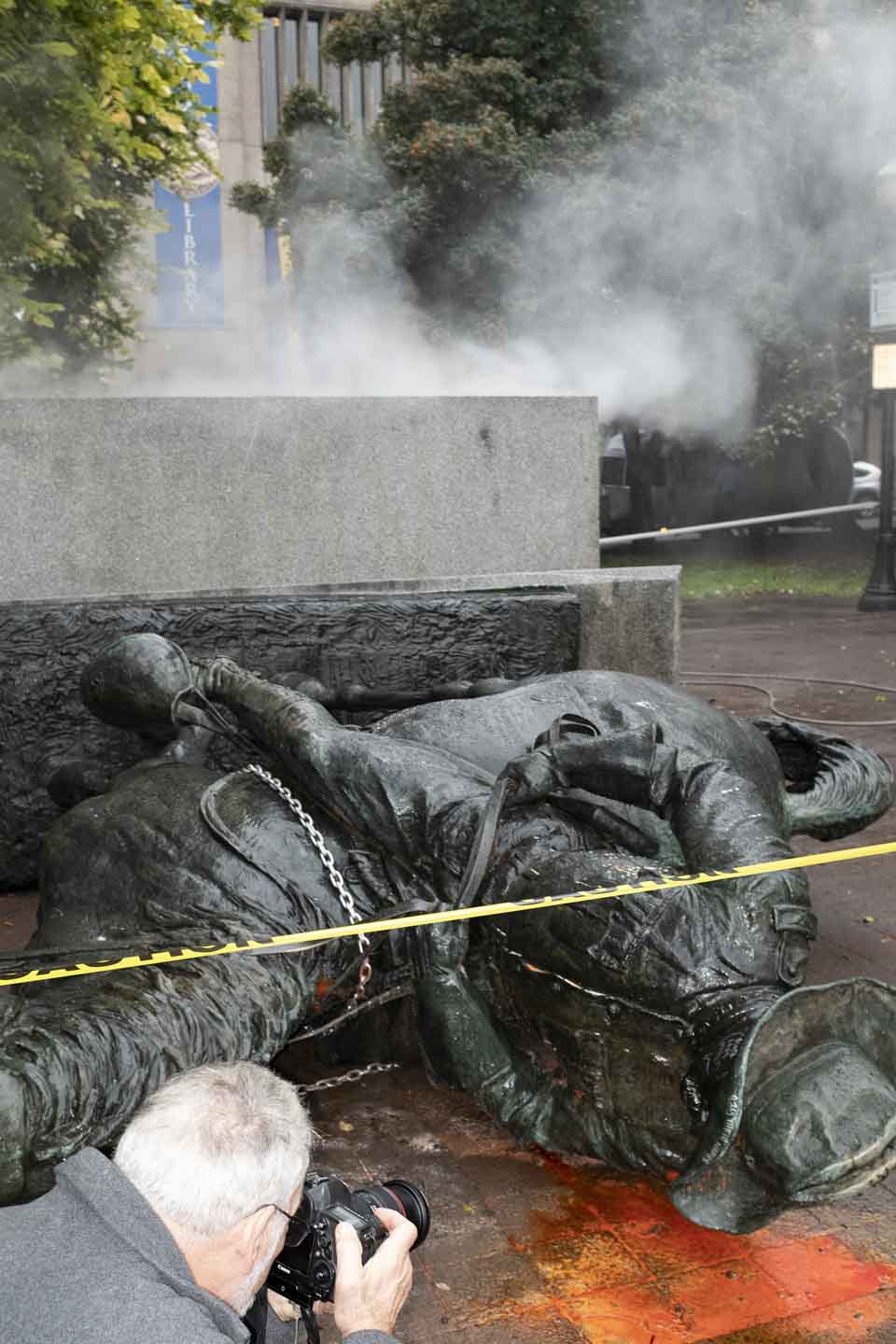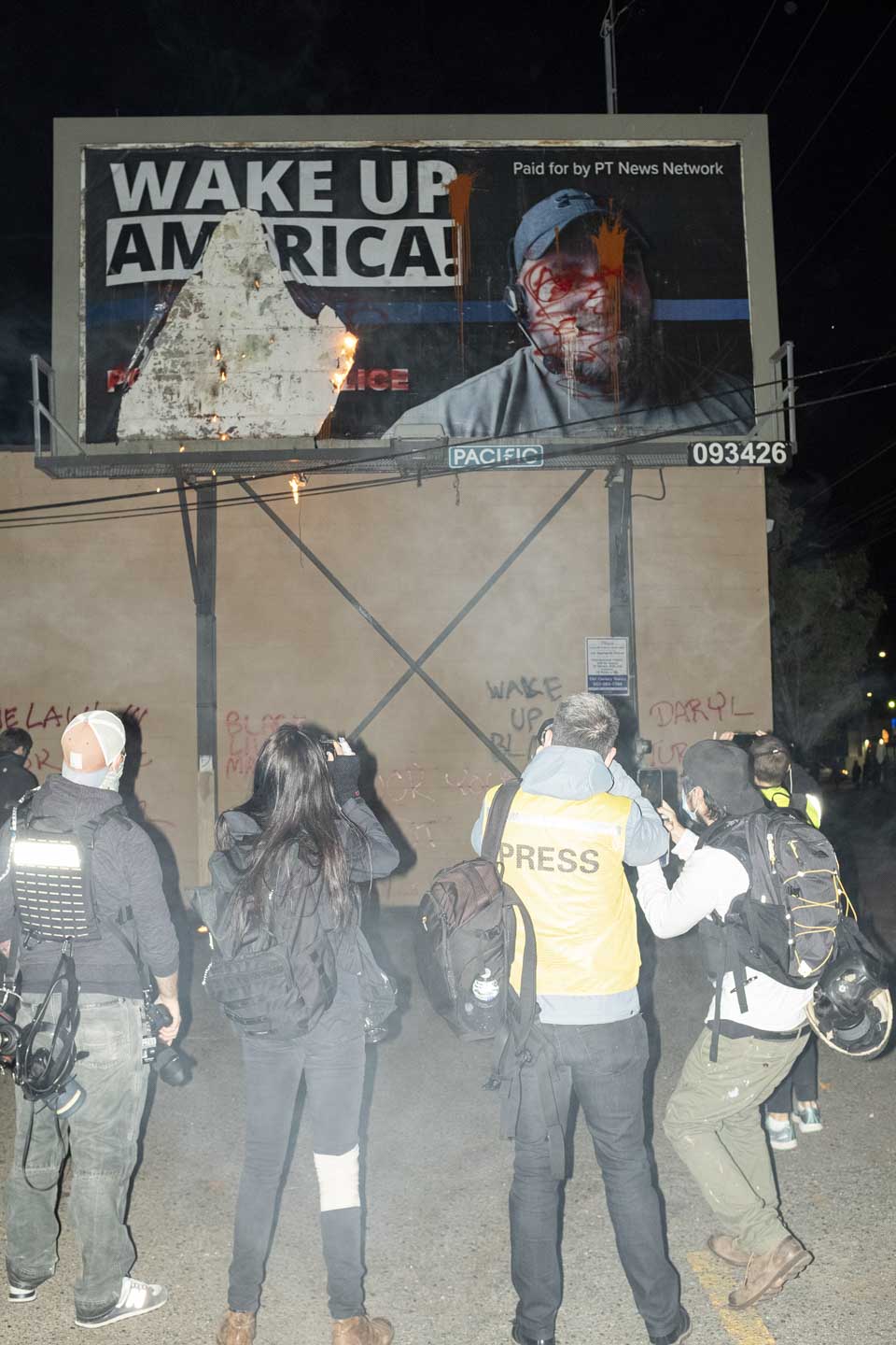 One night in late July, I found myself on the other side of the lens after being knocked to the ground by an overeager US marshal. An Associated Press photographer was there, and his dramatic photo of my hunched frame rising from a cloud of tear gas ran in newspapers and magazines around the world. By August, Portland was an unlikely epicenter of the national conversation around racial justice, and images were part of the reason. The pictures depicted spirited resistance to police aggression, but they also recorded far darker moments. When Patriot Prayer supporter Aaron J. Danielson was shot dead in late August, cell phone footage captured the shooter, Michael Reinoehl, in the act. I had seen Reinoehl at previous protests and had photographed him on several occasions. Reinoehl was eventually tracked down and killed by US marshals after giving an interview to Vice News.