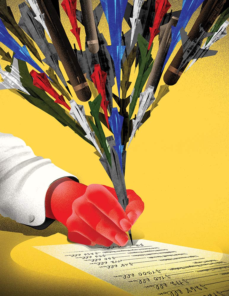 When I dipped into the 195-page section on “The Common Defense” in Project 2025’s Mandate for Leadership, my first question was how even the most hawkish of hawks could be disappointed with a Pentagon budget that is now soaring toward $1 trillion a year—hundreds of billions of dollars more than at the height of the Vietnam War or the peak year of the Cold War. I was particularly intrigued because the author of its chapter on the Pentagon is Christopher Miller, who, after a brief stint as acting secretary of defense under Donald Trump, wrote a memoir in which he asserted that our military is “bloated and wasteful” and argued that we could “cut our defense budget in half and it would still be nearly twice as big as China’s.”