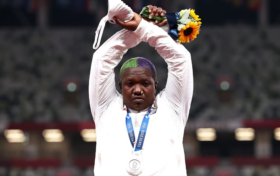 One athlete who refused to be censored is Raven Saunders, the US shot put star who won silver at the Games. After the athletes received their medals, Saunders crossed her arms in the form of an X. She explained that the gesture represented “the intersection of where all people who are oppressed meet.” Embracing her role-model status, Saunders added, “For me, just being who I always aspired to be, to be able to be me and not apologize for it [and] show the younger generation that no matter what they tell you, no matter how many boxes they try to fit you in, you can be you.”