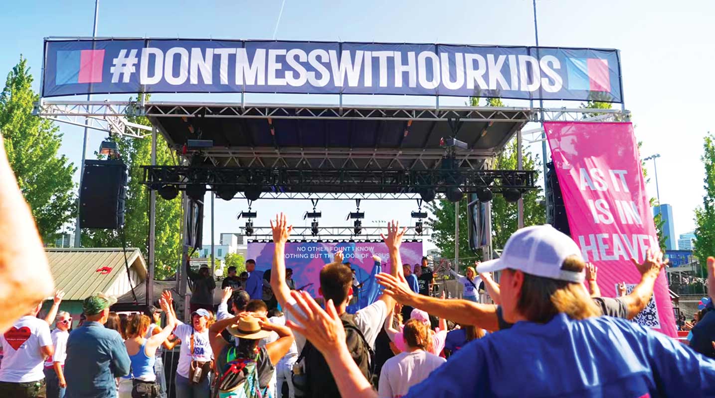 Last spring, the Mayday USA tour—a traveling road show of Christian parents’-rights activists campaigning against gender and sexual expression in children—brought its message to five American cities. Each of its appearances, in highly visible public arenas such as Times Square in New York City and Discovery Green in Houston, was something between a political rally, a Christian tent revival, and a college-football tailgate party. Music pulsated from the sound system, hands were held aloft in praise, and speakers assured the crowd that they were a righteous silent majority, fed up and ready to roar. Invoking Jesus’s love, activist influencers and charismatic pastors unleashed a barrage of alarmist rhetoric aiming to channel parental anxiety into a broader Christian-supremacist project.
