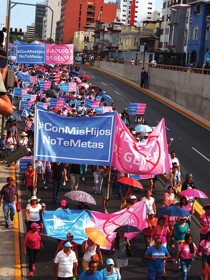 In 2016, Christian Rosas—the son of a prominent Peruvian evangelical congressman, a graduate of Jerry Falwell’s Liberty University, and an adviser to perennial hard-right presidential candidate Keiko Fujimori—emerged as the face of Con Mis Hijos No Te Metas (“Don’t Mess With My Kids”), a slick, media-savvy campaign claiming that gender education in schools was “homosexualizing” children.