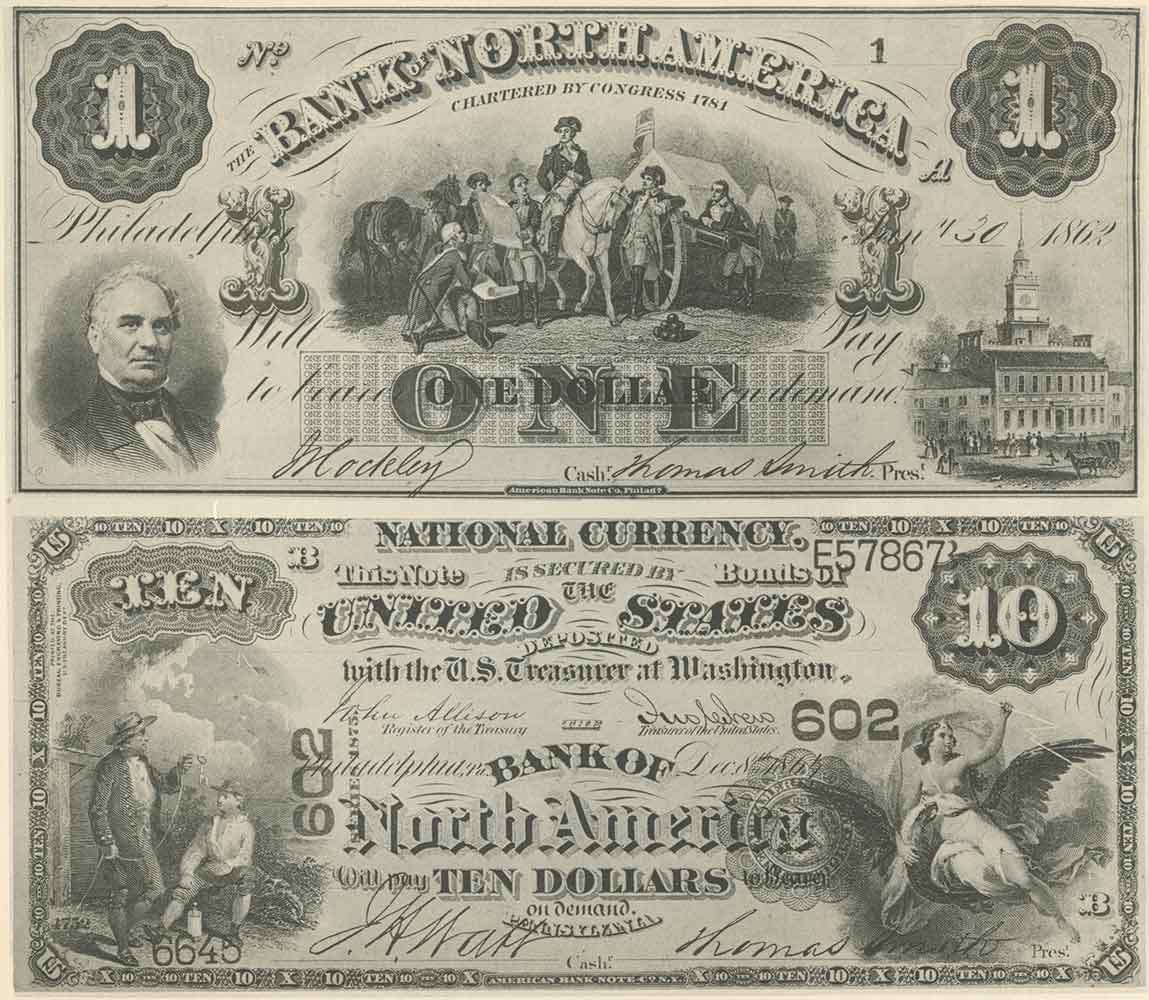 The banking leg of the new system took even longer to enact. The National Banking Act was not signed until February 1863 and got off to a slow start. It aimed not at establishing a central bank (which Chase opposed) but rather a public-private arrangement of nationally chartered banks that would be required to invest a portion of their capital in Treasury bonds and would issue the national currency. Bankers were naturally opposed—it was their banks and notes that Chase aimed to phase out—and fought the bill. Despite their efforts, it passed, but a year later there were only 100 or so national banks in existence, which issued a total of $4 million in bank notes—“a laughable sum,” as Lowenstein notes, “for a supposedly national currency.”