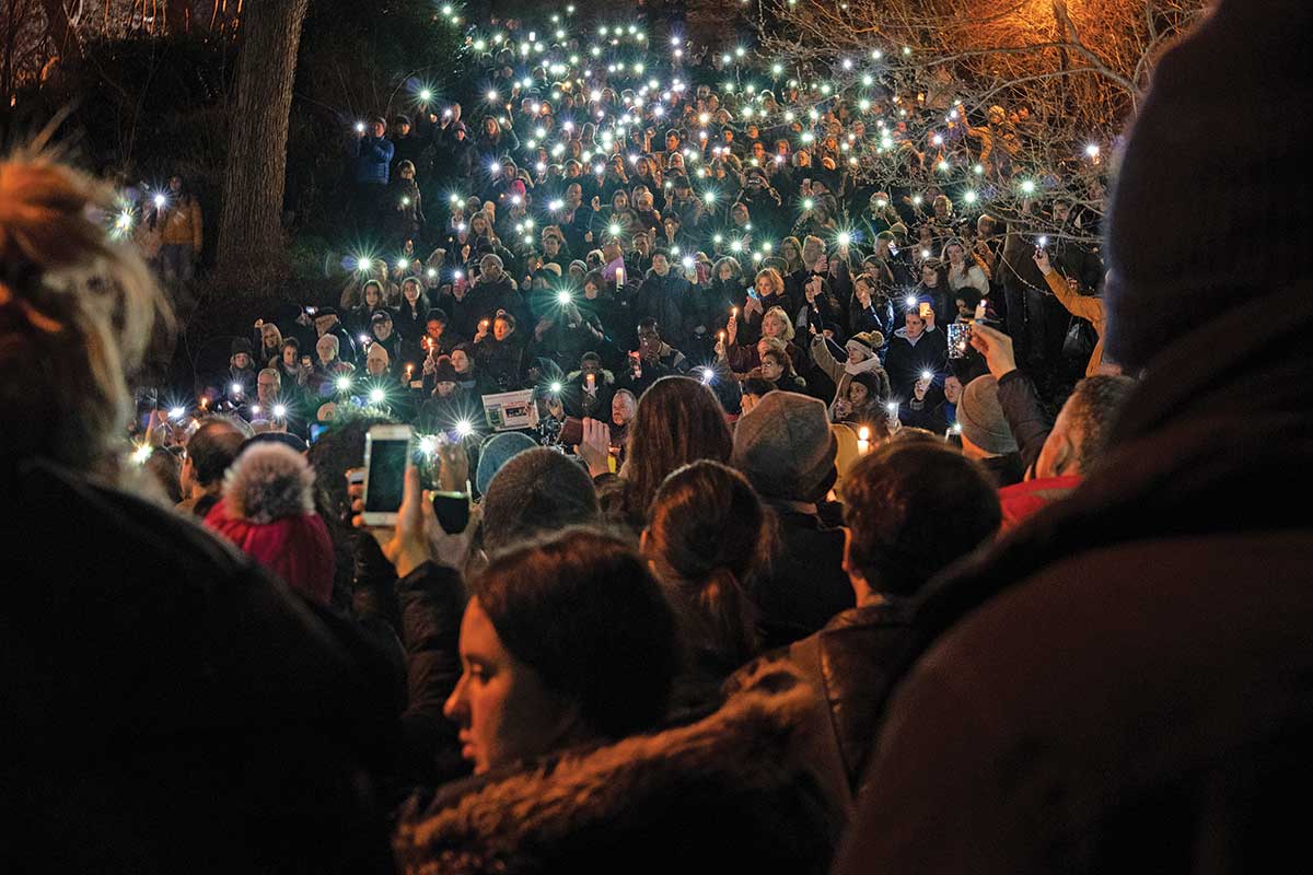 Public mourning: Barnard and Columbia students and Harlem residents attended a vigil in Morningside Park days after Majors’s death.(David Dee Delgado / Getty Images)