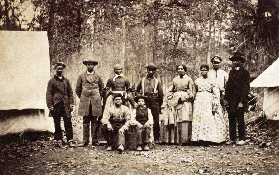 On arrival at the Union lines, enslaved people sought to make new lives for themselves. Around ports and waterways, in cotton and rice regions, and in the Mississippi Valley, camps were set up to house this so-called contraband, leading to extreme population growth. “The ten thousand Blacks who eventually gathered at Fort Monroe,” Davis writes, “represented more souls than most slaves could ever have seen in one place, more than the population of many towns on the East Coast. Such sights must have shocked everyone, Black and white, Southern and Northern, who caught a glimpse of the enormity of the slavery business: for if they saw ten thousand in one town where soldiers landed, they knew there were a dozen towns with similar sights.”