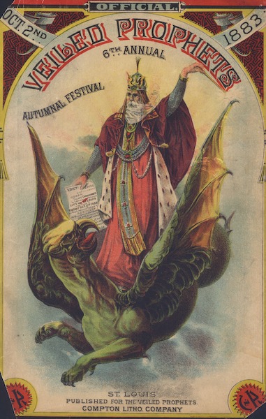 As the unelected mascot of St. Louis, the Veiled Prophet is a kind of Mardi Gras character—the divine figurehead of an exclusive men’s club for St. Louis’s ultrarich. He’s been the target of protest since the 1960s, but, because this symbol is so old, the meaning of the Veiled Prophet still gets confused, and many are quick to explain away the more sinister details.
