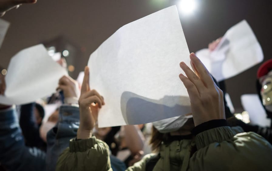 On November 26, a Chinese Twitter user, known to his now more than 825,000 followers as Teacher Li, received a photograph via direct message. It was of a student in Nanjing holding a piece of white A4 paper in front of a bell tower on a university campus. A fire in a locked-down apartment building in Urumqi, Xinjiang, had recently killed at least 10 residents, and commentary on the news had been censored, leading to viral social media posts that were repetitions of a single Chinese character: 好—hao, or “good”—a bitter statement about critical comments being scrubbed from the Internet, leaving “good” the only thing to say. Now, with the university student holding a blank sheet of paper, the online protests had moved to the streets.