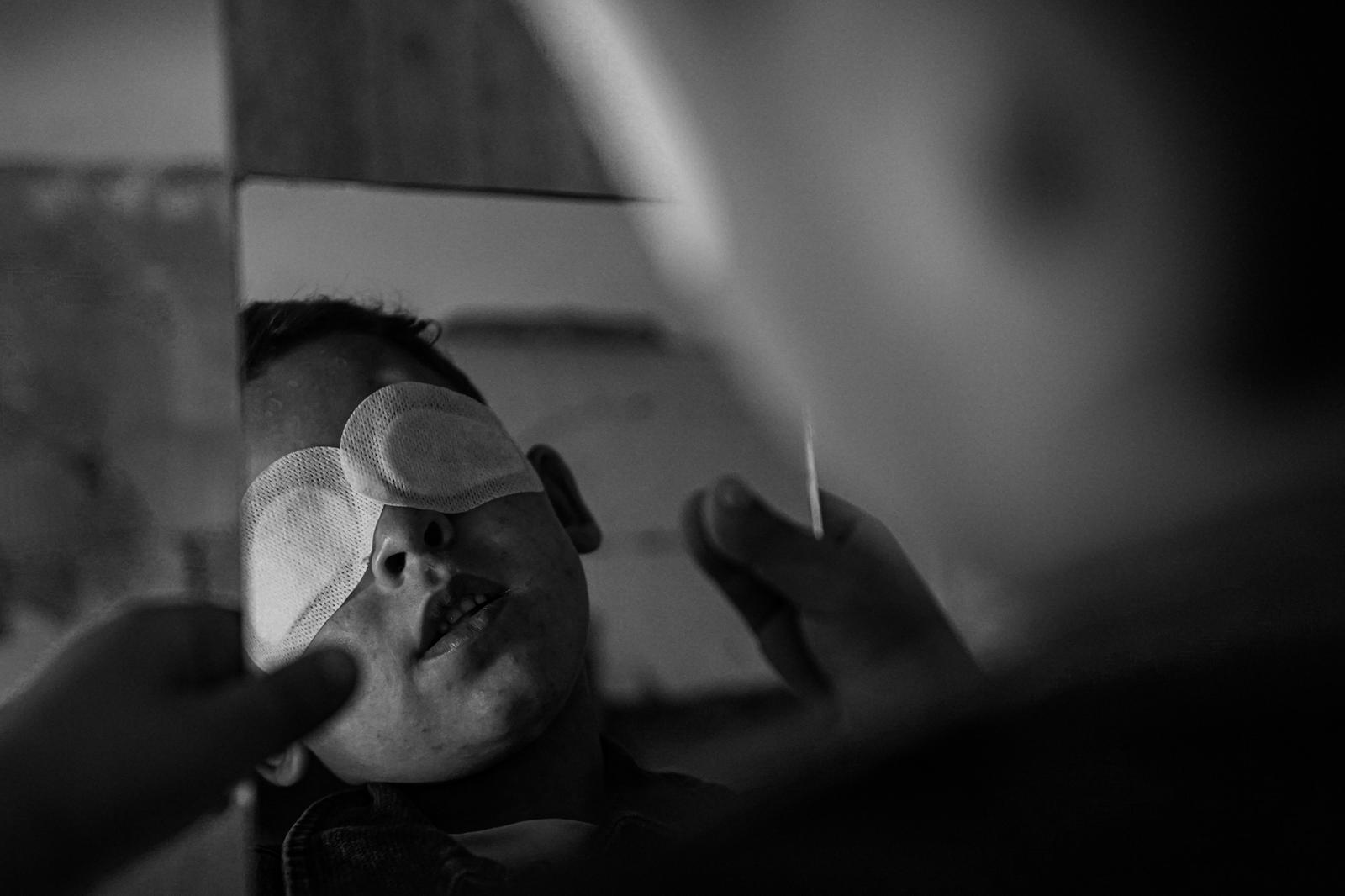 “When I took his picture, I realized—this child will never see his own reflection again,” Fteiha says. “It was the first time I photographed someone who had lost his sight completely.”