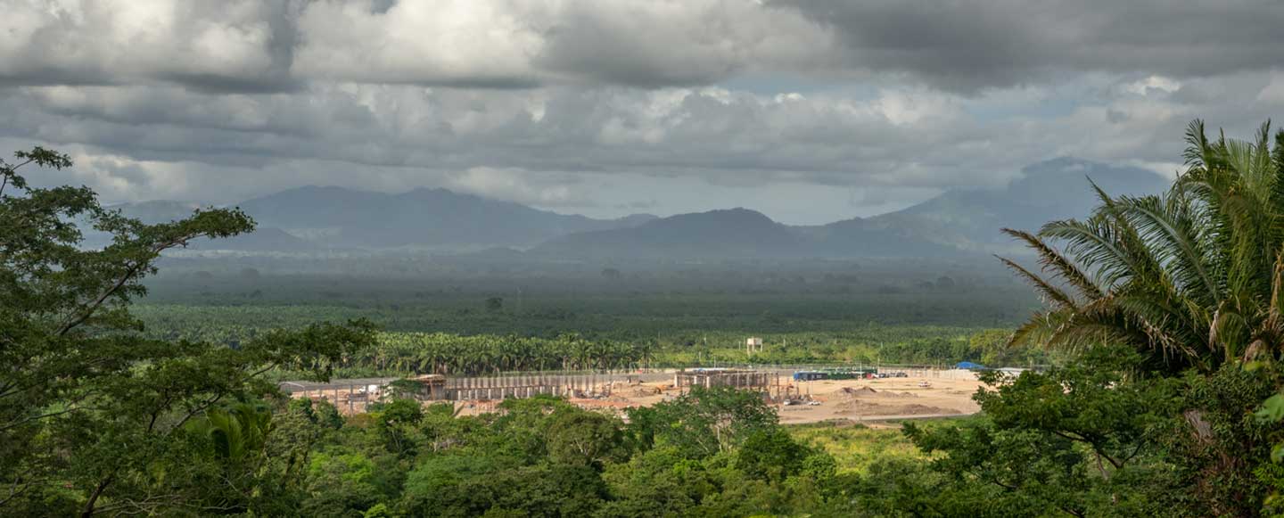 So if you want to see the sprawling mineral extraction complex being constructed here in Honduras’s lush Bajo Aguán valley, you have to hike past El Guapinol, one of the villages many fear the mine will poison. You ascend a mud-sluiced path of boulders, passing a line of barbed wire to reach a grassy embankment. From there, you can see the excavators, the trucks, the rows of concrete pilings, and the gaping brown hole scraped out of the valley’s verdant floors. The mine, whose conjoining iron oxide processing factory is set to be the largest in Central America, hasn’t been built yet. But blood is already being spilled over it.