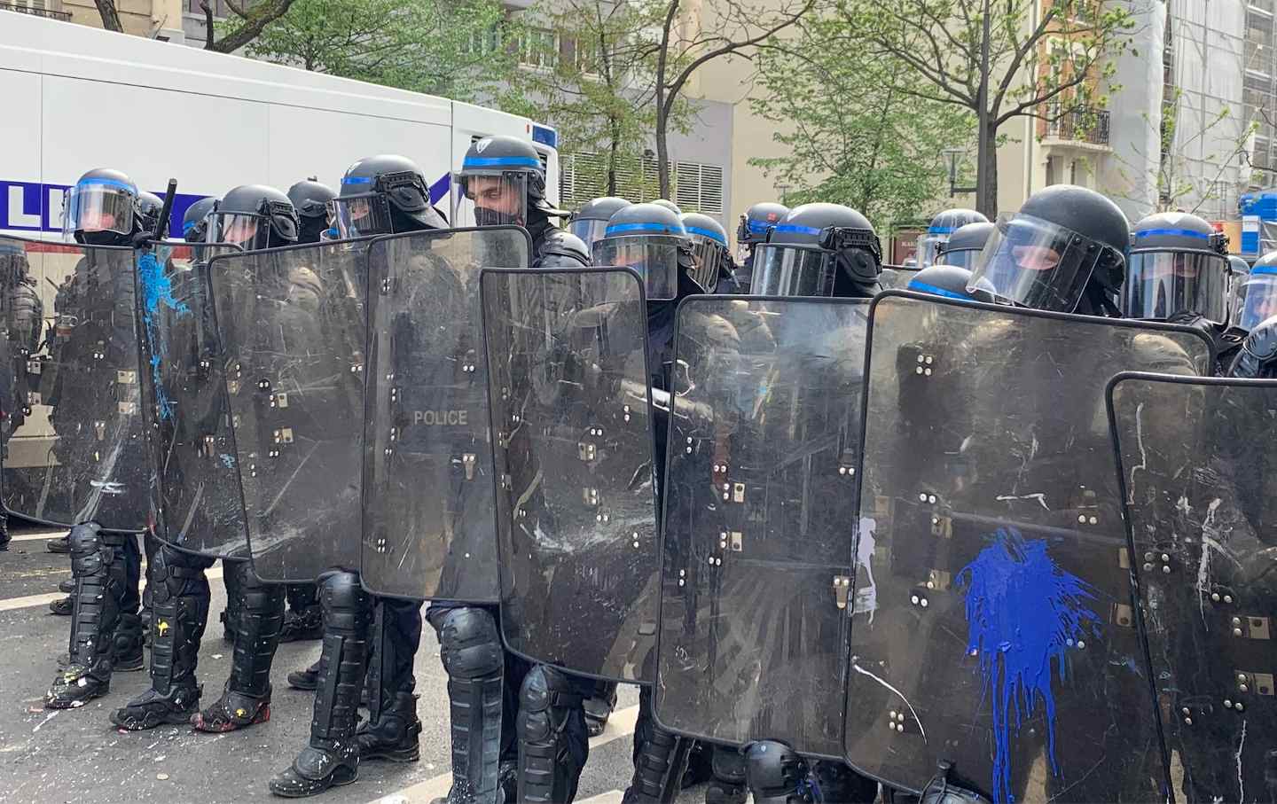 There have been multiple viral photos of French people being blasé in the face of police violence or general chaos—smoking a cigarette, sitting at a bistro, throwing unimpressed side-eye at a cop—and I am pleased to report that this national tendency was on display during even the most intense moments I witnessed on May Day. The police, with their plastic shields and ugly batons, were greeted with disdain or outright hostility, even after they began to discharge their chemical weapons and charge the crowd. When they trained a high-powered water cannon on us and began mowing down protesters with its streams, people scampered out of the way, then walked right back up to the police line to sneer. It would have been funny if I could breathe.