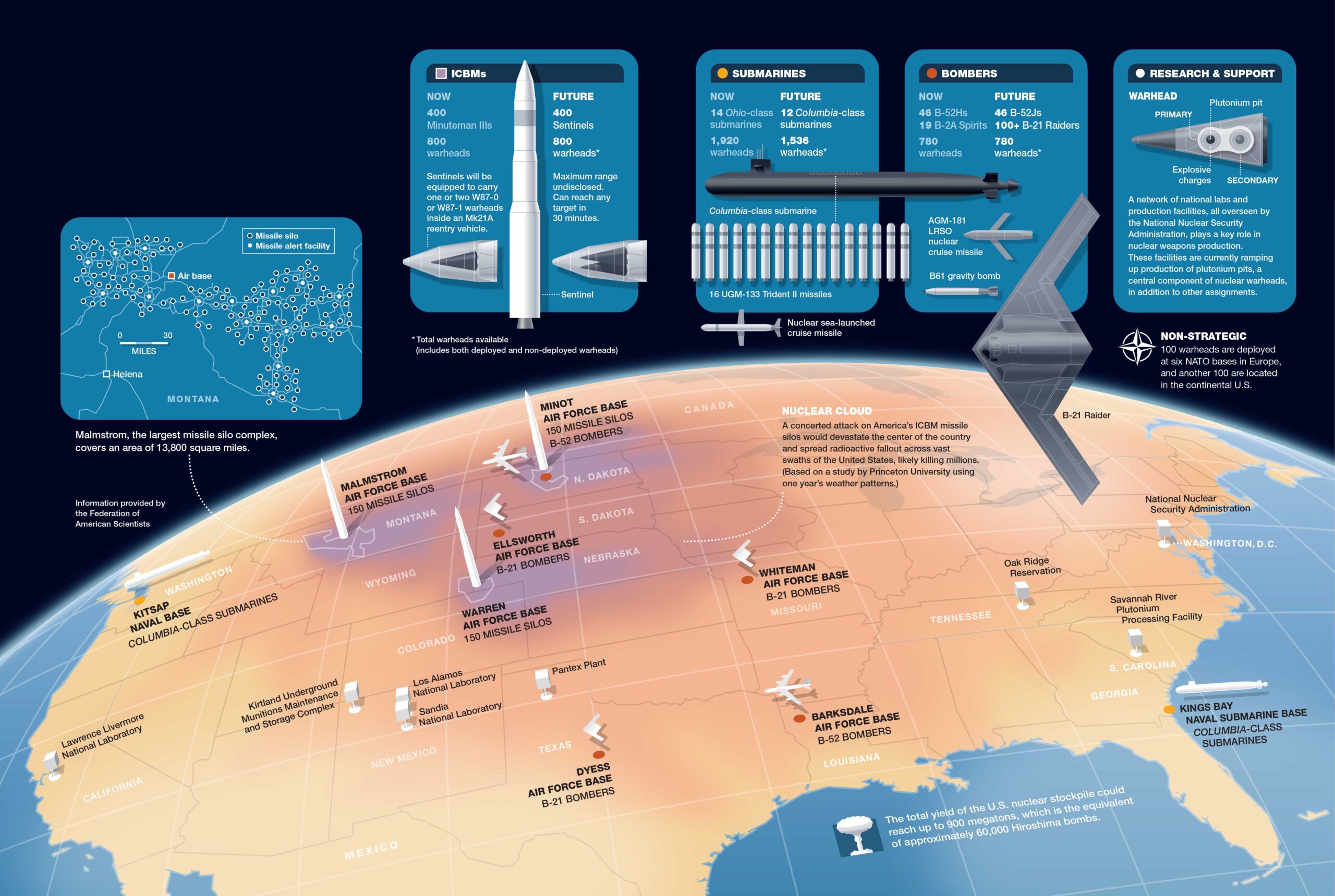 At the heart of these plans are the three prongs of the US arsenal—what is known as the nuclear triad, which consists of land-, air-, and sea-based weapons.