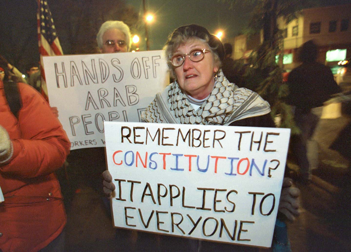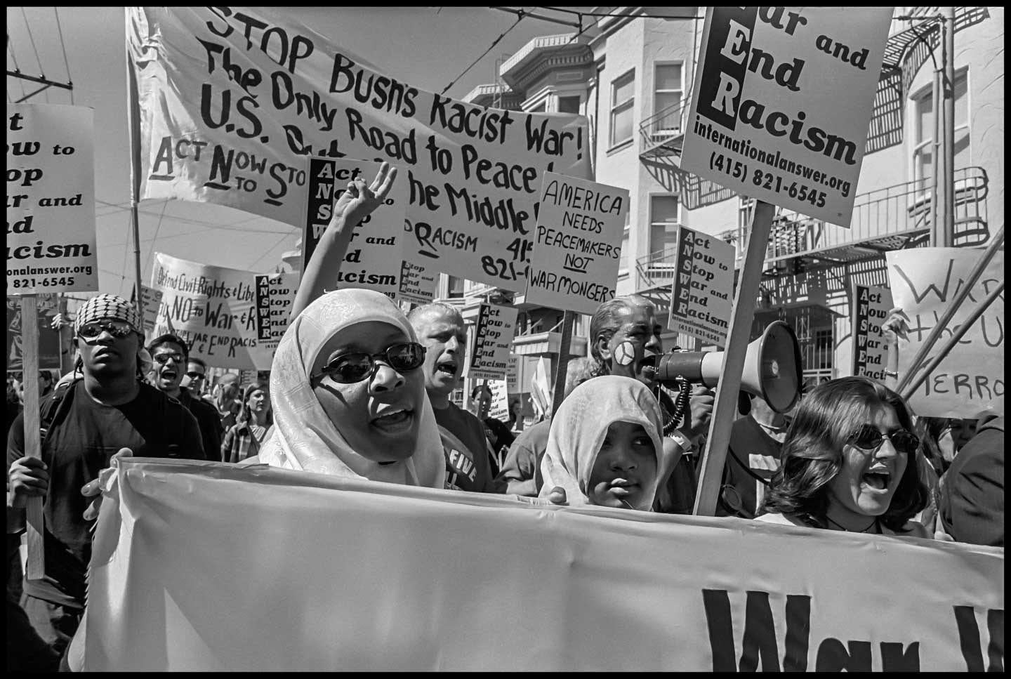 The first marches followed Congress’s vote by just two weeks, at the end of September. Once the invasion began, in October, the protests only continued. By October, also, our government began a crackdown on Muslims in the United States, with illegal roundups and imprisonment in hastily organized “detention centers.” Around the country, demonstrations condemned the racist raids, while government repression legitimized a broad wave of anti-Muslim attacks. People protesting the war in Afghanistan also quickly linked it to US Middle East policy in general, including vigorous US support for Israel’s military offensive in the occupied territories during the second intifada. Beyond the terrible human cost of the war, protesters also pointed out the enormous economic waste the war represented, with the enormous military budget the most recognizable symbol of this bloat.